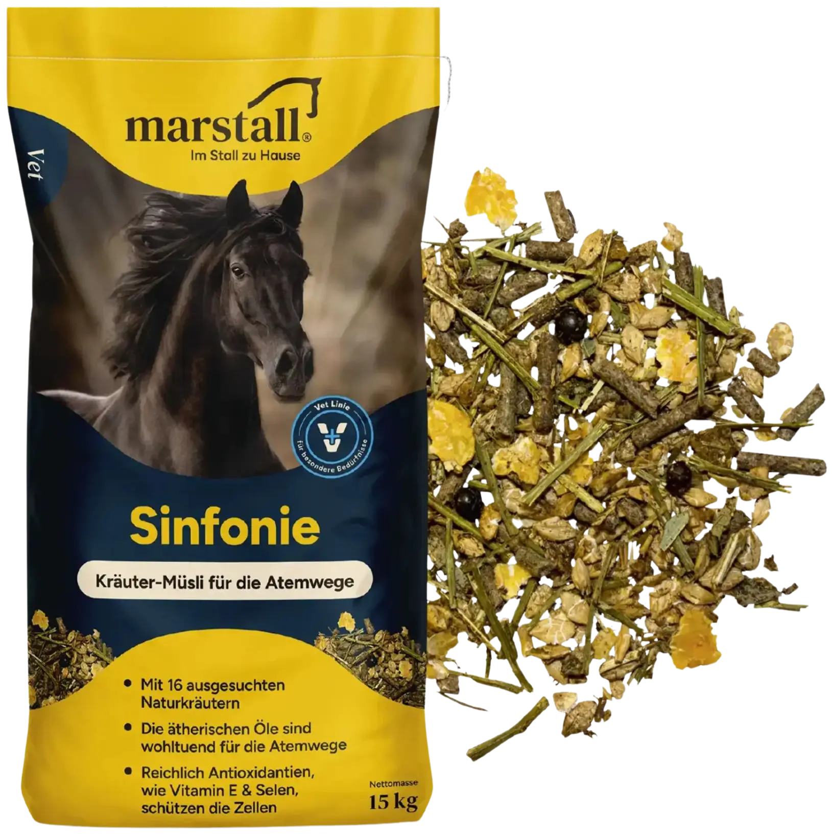 Der natürliche Geruch und Geschmack der essentiellen Bestandteile kann die Fresslust steigern. Manche Pferde fressen ihr Futter dadurch lieber. Pflanzliche Produkte wie MARSTALL Sinfonie tragen somit zu einer besseren Akzeptanz bei.